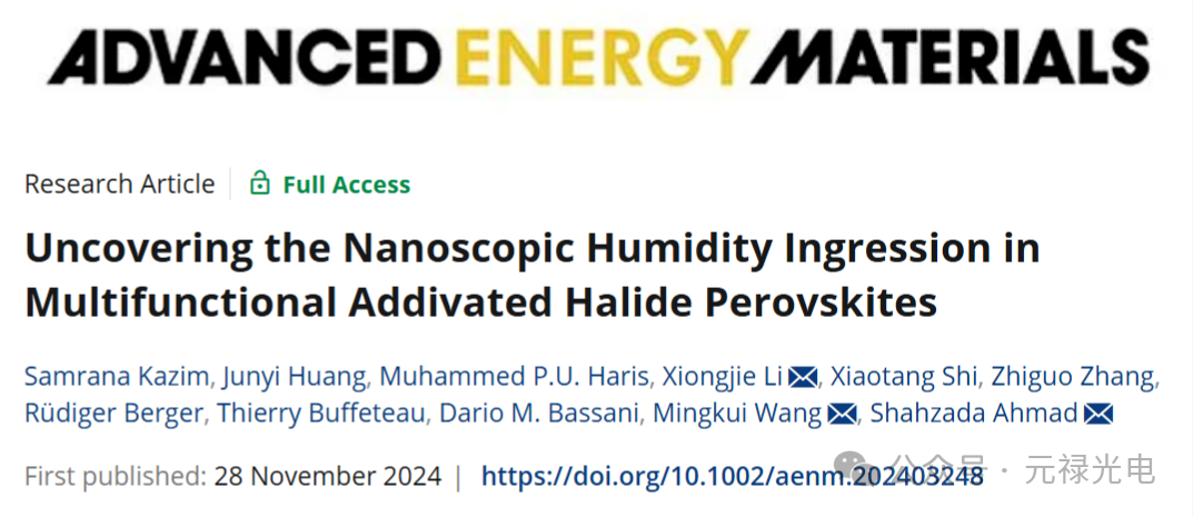 來自西班牙巴斯克材料應用中心(BCMaterials)Samrana Kazim & Shahzada Ahmad,以及來自華中科技大學王鳴魁教授 & 李雄杰團隊研究了含硫多功能添加劑對提高鈣鈦礦太陽能電池效率和濕度穩定性的影響。