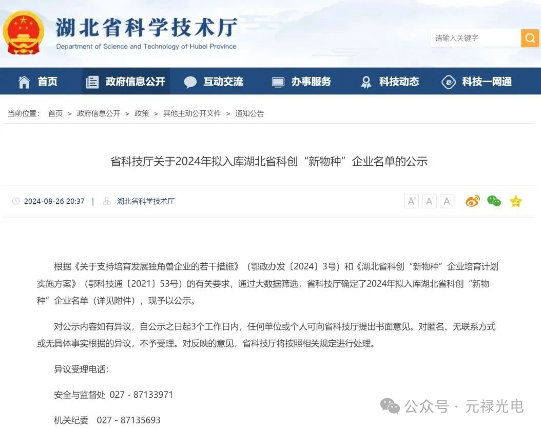 武漢元祿光電技術有限公司(以下簡稱“元祿光電”)獲評湖北科創“新物種”企業稱號。