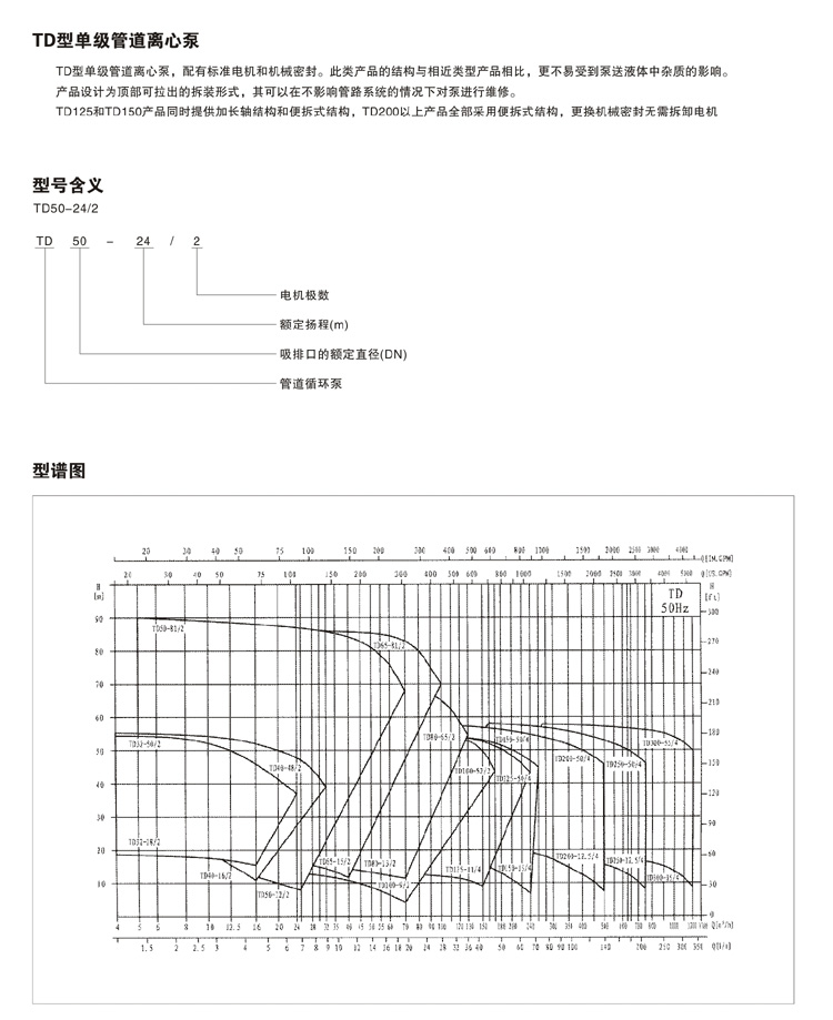 其中TD32-TD150口徑產(chǎn)品為加長(zhǎng)軸結(jié)構(gòu),TD200-TD300口徑產(chǎn)品為便拆式結(jié)構(gòu),便拆式結(jié)構(gòu)采用集裝式機(jī)械密封,更換機(jī)械密封時(shí)無(wú)需拆卸電機(jī)。
